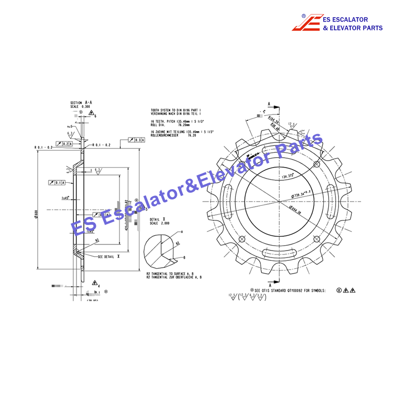 GO195JC4 Escalator Drive Shaft Sprocket Step Chain 350 mm 53 mm For 506 Main Drive Use For Other